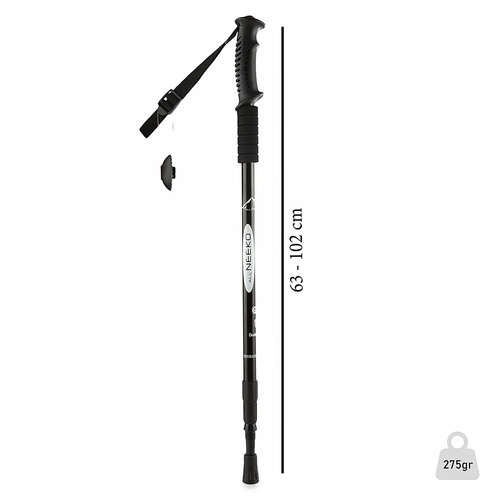 استفاده از باتوم کوهنوردی باعث کاهش درد زانو و افزایش قدرت و استقامت در کوهنوردی و تپه نوردی می شود. باتوم کوهنوردی آل نیکو از آلومینیوم ساخته شده که دارای دوام و استقامت بالا و وزن کمی در حدود 290 گرم می باشد. این باتوم مجهز به سیستم آنتی شوک است بدین صورت که فنر های داخلی قرار داده شده در این محصول تکان های ناشی از حرکت در مسیرهای سر پایینی را جذب می کند. دسته ی این باتوم دارای طراحی ارگونومیک بوده و از جنس پلاستیک فشرده است و خستگی و فشار وارده به مچ دست را کاهش می دهد. بر روی دسته این باتوم یک قطب نما برای جهت یابی تعبیه شده است. به منظور راحتی بیشتر و همچنین امکان گرفتن قسمت های پایین تر باتوم، 10 سانتیمتر فوم اضافه در پایین دسته قرار داده شده تا در مسیرهای پر فراز و نشیب به جای تغییر دادن طول باتوم، بتوانید جای دست خود را عوض کنید. مکانیزم جمع شدن این باتوم از نوع پیچی یا تلسکوپی می باشد و طول این باتوم توسط دو عدد پیچ تعبیه شده بر روی آن، بین حداقل 63 تا حداکثر 133 سانتیمتر قابل تغییر است. یک بند قابل تنظیم بر روی دسته ی این باتوم تعبیه شده که دور مچ قرار می گیرد و در طول مسیر حرکت، حمایت بسیار خوبی را ارائه می دهد. سخمه ی باتوم آل نیکو از جنس کاربید است که حتی در مسیرهای برفی و یخی از لغزش شما جلوگیری می کند. یک محافظ یا درپوش پلاستیکی سخمه، همراه این محصول وجود دارد که برای استفاده در مسیرهای آسفالت بسیار ایده آل است. گل برف همراه این محصول قابل تعویض است و در انتهای باتوم نصب می شوند و حرکت راحت تری را در مسیرهای برفی و یخ زده فراهم می کند و همچنین مانع از فرو رفتن زیاد باتوم در برف می شود. باتوم کوهنوردی آل نیکو باعث میشود، که عضلات درگیر کمتر خسته شوند و بتوانید در راهپیماییهای طولانی توان کافی را داشته باشید.