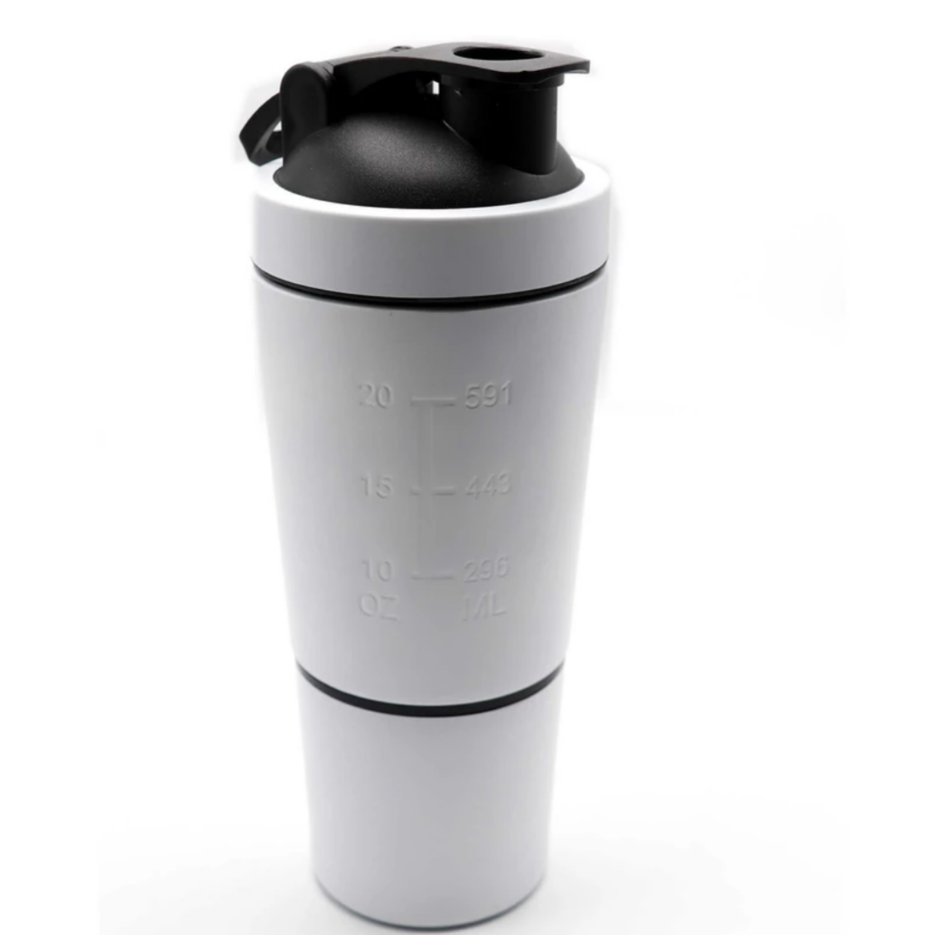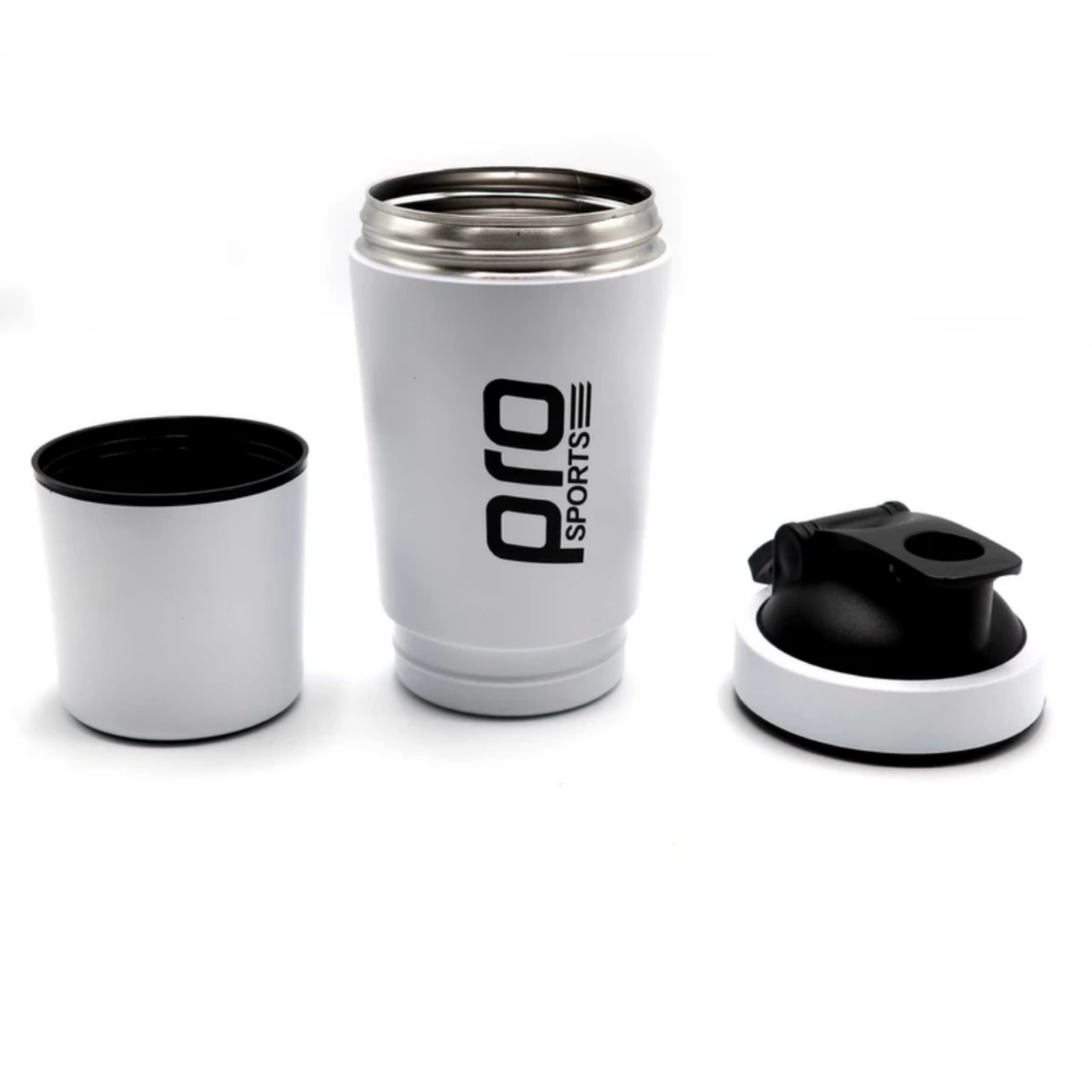 شیکر یکی از مهمترین و ضروری ترین ملزومات بدنسازی می باشد با تکان دادن آنها به راحتی می توان مکمل های ورزشی را برای قبل و بعد از تمرین آماده کرد. شیکر ورزشی پرو اسپرتز مدل CY201 یک شیکر خاص و کاربردی از جنس استیل می باشد که بسیار بادوام، مقاوم در برابر ضربه، ضد بو و ضد زنگ است. استیل بودن آن، امکان استفاده از آن را برای نوشیدنی های گرم نیز فراهم می کند و تا حدی قابلیت حفظ دما را نیز دارد. ساختار این محصول به صورت دو تکه می باشد. دارای یک قسمت مجزا در بخش انتهایی بوده که به لطف آن میتوانید قرص، پودر و مکمل ها را با خود به همراه داشته باشید. از طرف دیگر از این بخش میتوانید به عنوان لیوان نیز استفاده کنید. از این شیکر علاوه بر باشگاه برای سفر و کمپینگ نیز قابل استفاده و مناسب است.این شیکر دارای یک گوی فنری است که نقش همزن و میکس کننده ی مکمل ها را درون مایعات به عهده دارد. محل خروج مایعات این محصول به صورت ضامنی باز و بسته می شود و با توجه به طراحی که دارد، کاملاً ضد نشتی می باشد و شما می توانید شیکر را با خیال راحت در ساک ورزشی خود حمل کنید و استفاده نمایید. بر روی بدنه ی شیکر ورزشی پرو اسپرتز مدل CY201 شاهد درجه بندی هایی هستیم که کار با این شیکر را راحت تر و دقیق تر کرده است. درپوش پلاستیکی این قمقمه که به صورت پیچی باز و بسته می شود. نوع خروج آب و دهانهی لولهای، امکان نوشیدن آب را آسانتر کرده است. این محصول دارای ابعاد 9 × 18 سانتیمتر است و وزنی معادل 280 گرم دارد. گنجایش آن 591 سی سی است که کاملاً مناسب با نیازهای ورزشکاران حرفه ای می باشد.