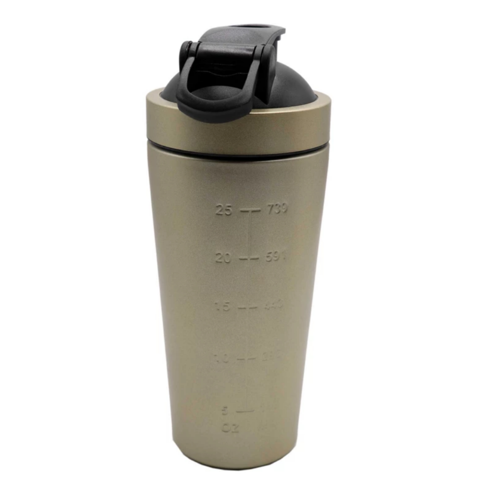 شیکر یکی از مهمترین و ضروری ترین ملزومات بدنسازی می باشد با تکان دادن آنها به راحتی می توان مکمل های ورزشی را برای قبل و بعد از تمرین آماده کرد. شیکر ورزشی پرو اسپرتز مدل CY201 یک شیکر خاص و کاربردی از جنس استیل می باشد که بسیار بادوام، مقاوم در برابر ضربه، ضد بو و ضد زنگ است. استیل بودن آن، امکان استفاده از آن را برای نوشیدنی های گرم نیز فراهم می کند و تا حدی قابلیت حفظ دما را نیز دارد.. از این شیکر علاوه بر باشگاه برای سفر و کمپینگ نیز قابل استفاده و مناسب است.این شیکر دارای یک گوی فنری است که نقش همزن و میکس کننده ی مکمل ها را درون مایعات به عهده دارد. محل خروج مایعات این محصول به صورت ضامنی باز و بسته می شود و با توجه به طراحی که دارد، کاملاً ضد نشتی می باشد و شما می توانید شیکر را با خیال راحت در ساک ورزشی خود حمل کنید و استفاده نمایید. بر روی بدنه ی شیکر ورزشی پرو اسپرتز مدل CY201 شاهد درجه بندی هایی هستیم که کار با این شیکر را راحت تر و دقیق تر کرده است. درپوش پلاستیکی این قمقمه که به صورت پیچی باز و بسته می شود. نوع خروج آب و دهانهی لولهای، امکان نوشیدن آب را آسانتر کرده است. سانتیمتر است و وزنی معادل 280 گرم دارد. گنجایش آن 751 سی سی است که کاملاً مناسب با نیازهای ورزشکاران حرفه ای می باشد.