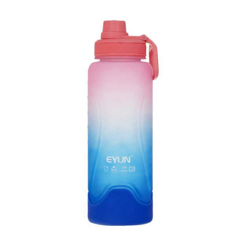 قمقمه ورزشی EYUN -YY-535 دارای طراحی ظاهری بسیار زیبا و جذاب است و با نشانگرهای زمان و نقل قول های الهام بخش طراحی شده است. به شما کمک می کند تا انگیزه ی کافی را برای نوشیدن آب مورد نیاز بدن خود در طول روز داشته باشید. با بدنه ی نیمه شفاف و درجه بندی گنجایش، به شما کمک می کند میزان مصرف روزانه ی آب خود را به راحتی و واضح اندازه گیری کنید و زیر نظر داشته باشید. حجم این قمقمه 1000 سی سی و مناسب برای انواع مایعات و نوشیدنی ها می باشد. دهانه ی بزرگی دارد که باعث می شود به راحتی با تکه های یخ و میوه ها پر شود. در ساخت بطری آب EYUN -YY-535 از مواد پلاستیکی ایمن جدید تریتان استفاده شده است که 100% بدون BPA ، غیر سمی و بی بو، زندگی سالم تری را به شما و خانواده شما ارائه می دهد. این بطری سبک وزن است و هنگامی که آن را در دست می گیرید، احساس لطیف و بسیار خوبی را برای شما به ارمغان می آورد. درب این قمقمه از نوع پیچی و کاملاً آب بندی شده و ضد نشتی است. دارای یک درپوش روی دهانه ی خروجی است تا از ورود گرد و غبار، کثیفی یا گل و لای به نوشیدنی شما جلوگیری کند. این قمقمه برای نوشیدنی های سرد و گرم از 20- درجه تا 120+ درجه، قابل استفاده می باشد. نوع خروج آب و دهانهی لولهای، امکان نوشیدن آب را آسانتر کرده و انتخابی سنجیده در هنگام فعالیتهای ورزشی است. دارای دستگیره ی متصل است که این امکان را به شما می دهد که قمقمه را به راحتی حمل کنید و به هرجایی می خواهید آویزان کنید. از ویژگی های دیگر این قمقمه ورزشی داشتن زیره ی سیلیکونی برای جلوگیری از سُر خوردن و ضد ضربه بودن قوی می باشد. ابعاد آن 8x26 سانتی می باشد. این قمقمه با ظاهری اسپرت و شیک، در رنگ های متنوع ارائه شده است. برای پیاده روی، دوچرخه سواری، کمپینگ، دویدن، یوگا یا در خانه، باشگاه، مدرسه و دفترکار ضروری و لازم است.