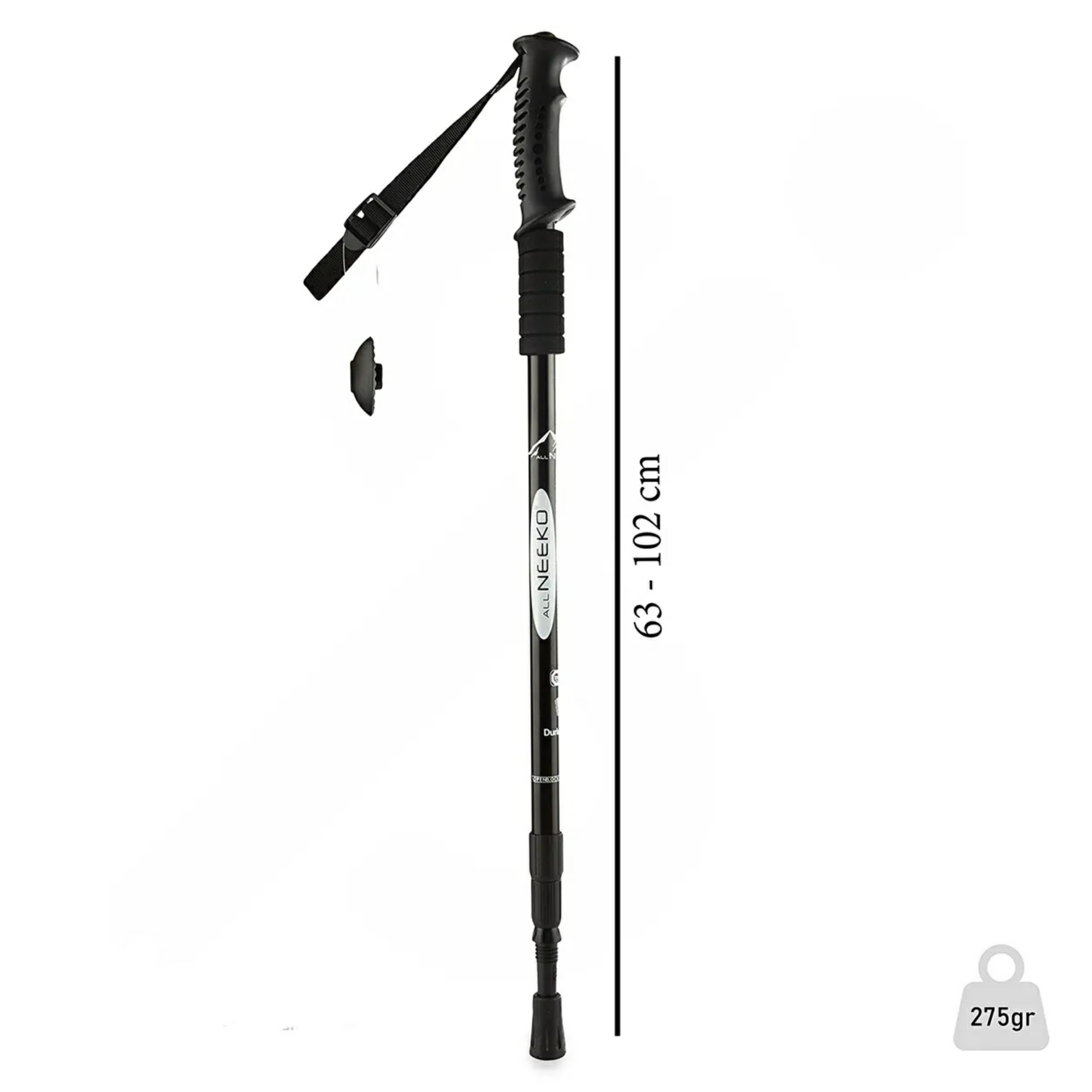 استفاده از باتوم کوهنوردی باعث کاهش درد زانو و افزایش قدرت و استقامت در کوهنوردی و تپه نوردی می شود. باتوم کوهنوردی آل نیکو از آلومینیوم ساخته شده که دارای دوام و استقامت بالا و وزن کمی در حدود 290 گرم می باشد. این باتوم مجهز به سیستم آنتی شوک است بدین صورت که فنر های داخلی قرار داده شده در این محصول تکان های ناشی از حرکت در مسیرهای سر پایینی را جذب می کند. دسته ی این باتوم دارای طراحی ارگونومیک بوده و از جنس پلاستیک فشرده است و خستگی و فشار وارده به مچ دست را کاهش می دهد. بر روی دسته این باتوم یک قطب نما برای جهت یابی تعبیه شده است. به منظور راحتی بیشتر و همچنین امکان گرفتن قسمت های پایین تر باتوم، 10 سانتیمتر فوم اضافه در پایین دسته قرار داده شده تا در مسیرهای پر فراز و نشیب به جای تغییر دادن طول باتوم، بتوانید جای دست خود را عوض کنید. مکانیزم جمع شدن این باتوم از نوع پیچی یا تلسکوپی می باشد و طول این باتوم توسط دو عدد پیچ تعبیه شده بر روی آن، بین حداقل 63 تا حداکثر 133 سانتیمتر قابل تغییر است. یک بند قابل تنظیم بر روی دسته ی این باتوم تعبیه شده که دور مچ قرار می گیرد و در طول مسیر حرکت، حمایت بسیار خوبی را ارائه می دهد. سخمه ی باتوم آل نیکو از جنس کاربید است که حتی در مسیرهای برفی و یخی از لغزش شما جلوگیری می کند. یک محافظ یا درپوش پلاستیکی سخمه، همراه این محصول وجود دارد که برای استفاده در مسیرهای آسفالت بسیار ایده آل است. گل برف همراه این محصول قابل تعویض است و در انتهای باتوم نصب می شوند و حرکت راحت تری را در مسیرهای برفی و یخ زده فراهم می کند و همچنین مانع از فرو رفتن زیاد باتوم در برف می شود. باتوم کوهنوردی آل نیکو باعث میشود، که عضلات درگیر کمتر خسته شوند و بتوانید در راهپیماییهای طولانی توان کافی را داشتارتفاع این عصا توسط مکانیزم پیچی بین 53 تا 122 سانتی متر مطابق با قد و نیاز شما به آسانی قابل تغییر می باشد. سخمه ی باتوم از جنس آلیاژ فولاد ضد زنگ و مقاوم است که دارای یک درپوش پلاستیکی مخصوص بوده تا به کوله و دیگر وسایل آسیبی وارد نکند و برای راه رفتن در مسیرهای سنگفرش، پیاده روها یا سنگ های صاف بزرگ به کار برده می شود.