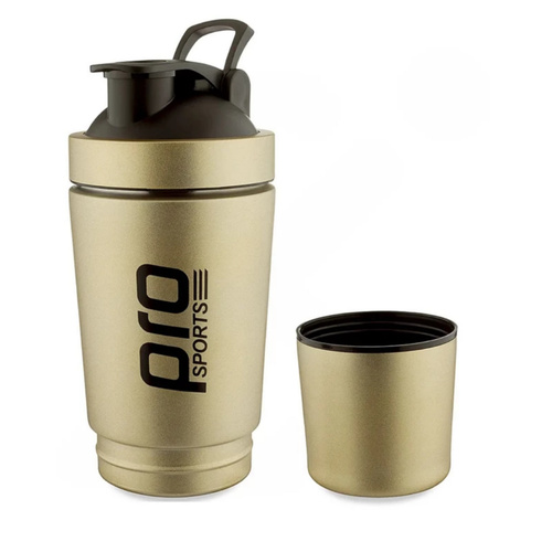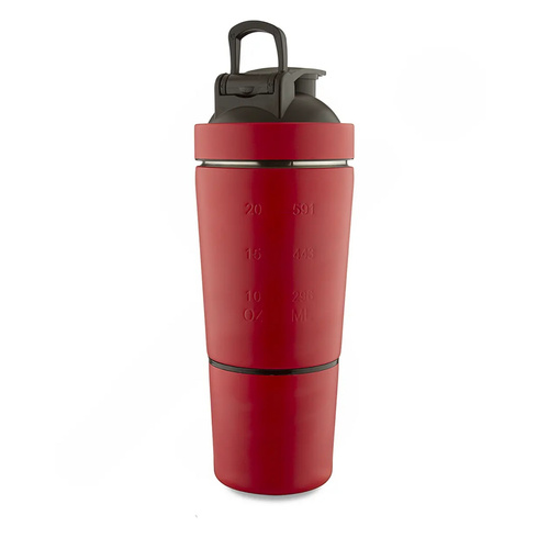 شیکر یکی از مهمترین و ضروری ترین ملزومات بدنسازی می باشد با تکان دادن آنها به راحتی می توان مکمل های ورزشی را برای قبل و بعد از تمرین آماده کرد. شیکر ورزشی یک شیکر خاص و کاربردی از جنس استیل می باشد که بسیار بادوام، مقاوم در برابر ضربه، ضد بو و ضد زنگ است. استیل بودن آن، امکان استفاده از آن را برای نوشیدنی های گرم نیز فراهم می کند و تا حدی قابلیت حفظ دما را نیز دارد. ساختار این محصول به صورت دو تکه می باشد. دارای یک قسمت مجزا در بخش انتهایی بوده که به لطف آن میتوانید قرص، پودر و مکمل ها را با خود به همراه داشته باشید. از طرف دیگر از این بخش میتوانید به عنوان لیوان نیز استفاده کنید. از این شیکر علاوه بر باشگاه برای سفر و کمپینگ نیز قابل استفاده و مناسب است. این شیکر دارای یک گوی فنری است که نقش همزن و میکس کننده ی مکمل ها را درون مایعات به عهده دارد. محل خروج مایعات این محصول به صورت ضامنی باز و بسته می شود و با توجه به طراحی که دارد، کاملاً ضد نشتی می باشد و شما میتوانید شیکر را با خیال راحت در ساک ورزشی خود حمل کنید و استفاده نمایید. بر روی بدنه ی شیکر ورزشی شاهد درجه بندی هایی هستیم که کار با این شیکر را راحت تر و دقیق تر کرده است. درپوش پلاستیکی این قمقمه که به صورت پیچی باز و بسته می شود. نوع خروج آب و دهانهی لولهای، امکان نوشیدن آب را آسانتر کرده است. این محصول دارای ابعاد 9 × 18 سانتیمتر است و وزنی معادل 280 گرم دارد. گنجایش آن 591 سی سی است که کاملاً مناسب با نیازهای ورزشکاران حرفه ای می باشد
